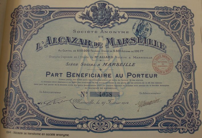 En 1914 L'Alcazar se transforme en société anonyme