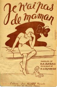 L'hiver est venu, elle tousse On l'a conduite à l'hôpital Où chaque jour, hélas, la pousse Vers son destin sombre et fatal. Alors voyant parmi les cierges, Souriante et vêtue de blanc La pure statue de la vierge Elle murmure en expirant REFRAIN Je n'ai pas de maman Ecoutez tendrement Ma dernière prière Je n'ai pas de maman Vous éternellement Devenez donc ma mère Oh! Vous tous les parents, L'abandon d'un enfant Fait de lui un martyre Il ne doit jamais dire Je n'ai pas de maman |