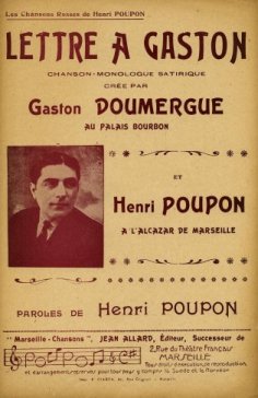 5 Aux finances, Lefèvre aurait été très bien C'était vraiment "Lefèvre-Utile" Bien sûr il aurait fait son p'tit beurr' j'en conviens Mais question d'galette il est habile Puis à la Guerr' j'aurais placé Un homme de métier : Le Colonel Rousset A la Marin' c'est pas malin J'aurais désigné: Louis Marin 6 Pour les Travaux Publics, comm' tu dois le penser, Loucheur avait ma préférence Et puis j'ai réfléchi que pour l'récompenser De tout c'qu'il a fait pour la France Il fallait être vraimùent plus chic Et je me suis dit : Non ! Pas les Travaux Publics Pour c'qu'il a fait c'est pas assez Ca vaut bien les Travaux forcés. 7 Pour c'qui est des P.T.T.du moins je le présume Léon Blum était la bonne affaire Si dans les bureaux d' postes il n'y a jamais d' Blum Qu'au moins y en ait au Ministère. A l'Aviation ça c'est cocasse J'aurais sans hésiter désigné un "Candace" Et aux Cult's j'aurais mis je crois Milliès à cause de " Lacroix ". 8 Je te quitte Gaston; mais la prochaine fois Ecoute-moi, va, je t'assure Il ne m'manque qu'un homme et c'est comme tu vois L' Ministre de l'Agriculture C' lui-là, je r'nonce à le chercher j'voulais quelqu'un qui sach' labourer et piocher Mais je n'ai trouvé, j'en suis fâché... ...Que des gens qui savent " faucher ". |